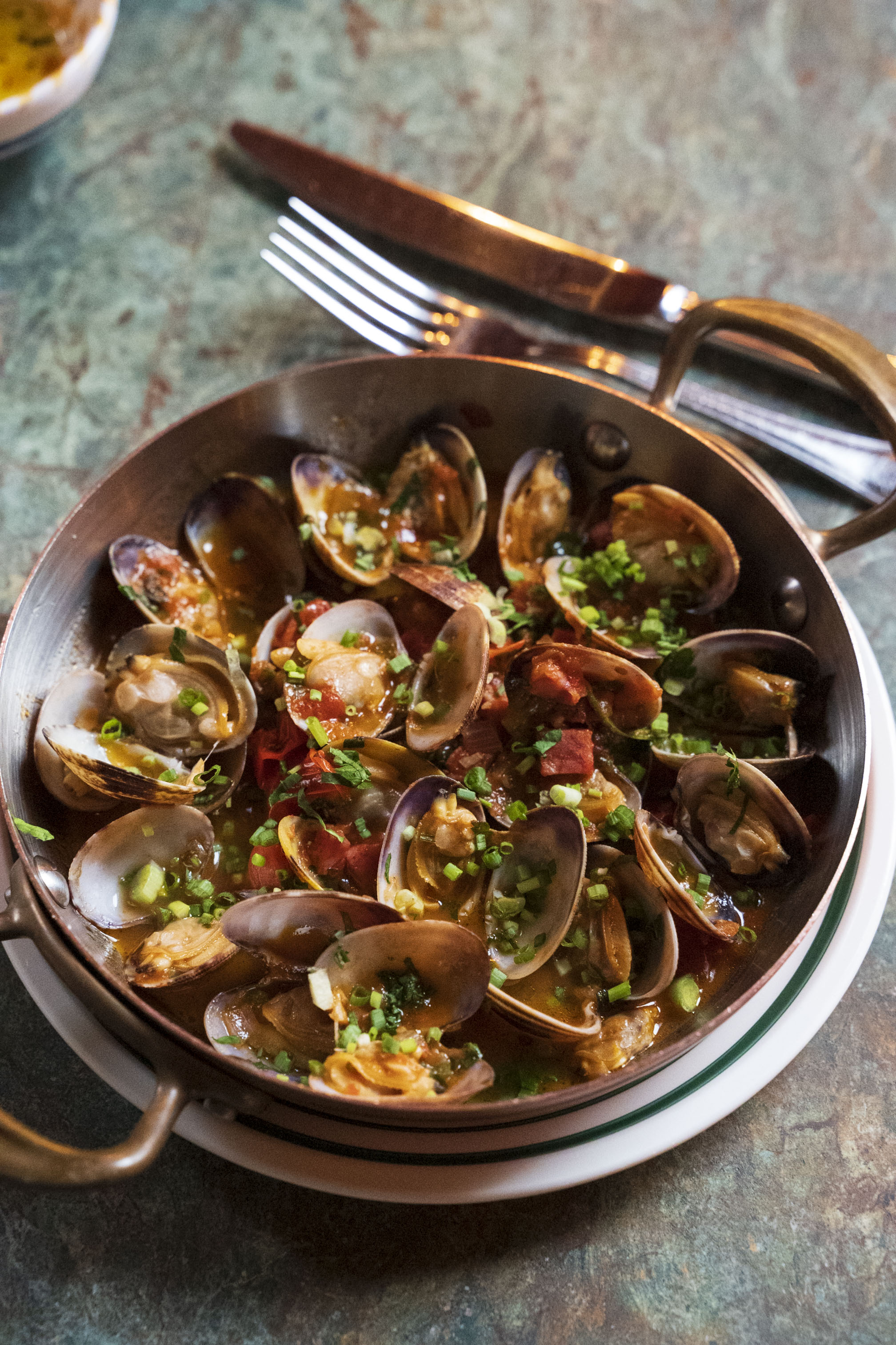 La table est simple, ge?ne?reuse et gourmande. Par ici la re?galade : des arancini, ces fameuses croquettes de risotto bien croustillantes au fromage filant, du jambon de Parme, des bruschettas et des vitellos tonnatos, des charcuteries italiennes et des focaccias, des carpaccios, des pastas et des pizzas, le tout dans une vaisselle a? tomber, haute en couleurs.